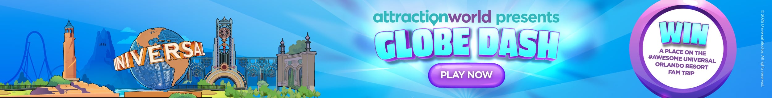 - The prize is a place on the Attraction World Universal Orlando Resort Fam Trip, taking place from 12 June 2026 for a week.