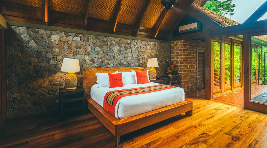 Amor Arenal’s cabins – or casitas – come with panoramic views of the Arenal volcano and the nearby town of La Fortuna. Also, the hotel has taken advantage of its proximity to La Fortuna’s hot springs to create three mineral swimming pools. Guests should also be able to spot sloths and howler monkeys in Arenal Volcano National Park’s rainforest.