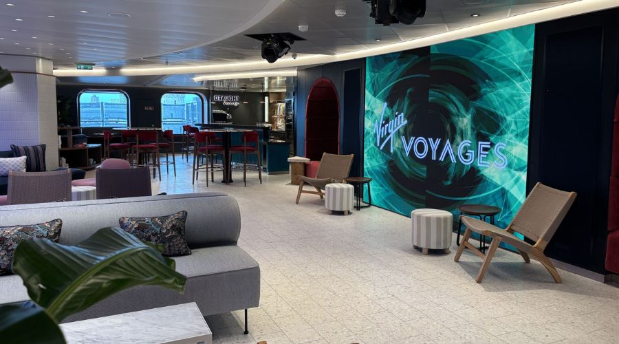 As passengers embark on Deck 6, they arrive at the Roundabout, which is the ship’s central atrium. As Brilliant Lady will be the first of the Virgin ships to sail to Alaska, the area has been designed with cold weather in mind, so the Roundabout will act as a social space. There are seating areas and spaces for live acts to perform, and a nearby bar called the Draught Haus.