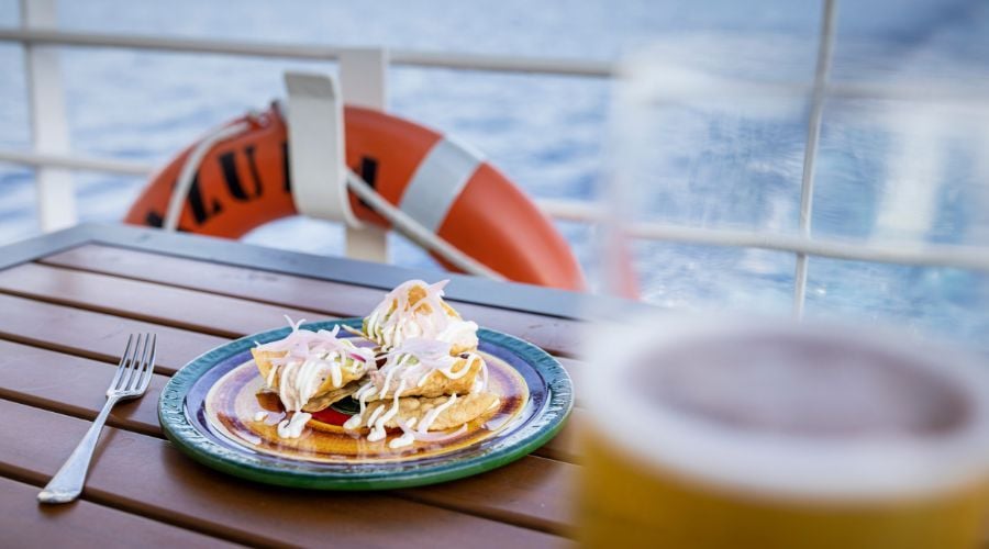 Epicurean on Deck 17 is a good suggestion for a special occasion. Its fine dining menu costs £35pp and comes with a bit of theatre – such as hand-carving Iberico ham at your table and lighting up the room with a crepes suzette for dessert. The dinner usually lasts around two and a half hours.