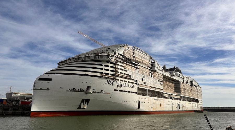 The two new ships – the seventh and eighth in the class – will be sister ships to MSC World Europa and MSC World America, which have already launched, and MSC World Asia (pictured below, at the shipyard in France) and MSC World Atlantic, which are currently under construction.