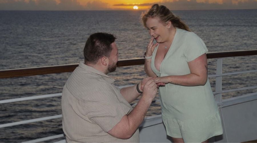 The couple is currently sailing on Holland America Line’s Nieuw Statendam, in the Caribbean, where Dan popped the question on Sunday.