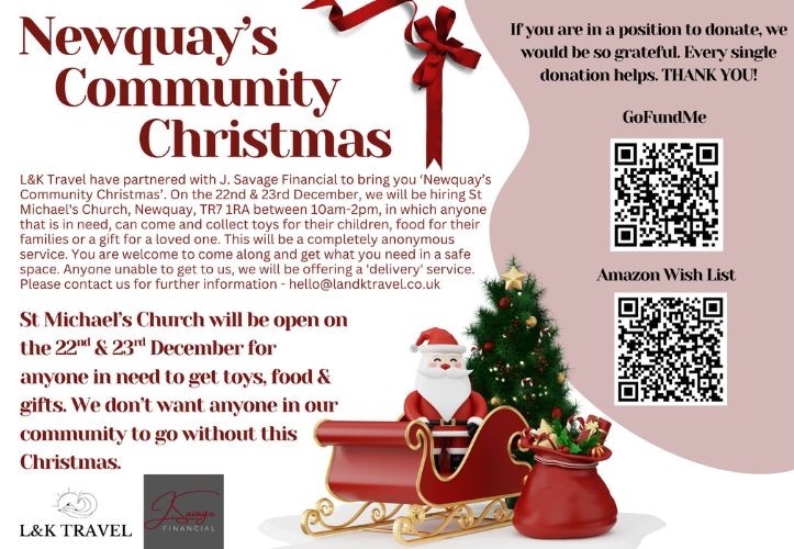 Together, they’ve launched the Newquay Community Christmas project, which includes a GoFundMe campaign, Amazon Wish List and a fundraising day on 21 December with tombola prizes on offer, including some donated by travel companies.