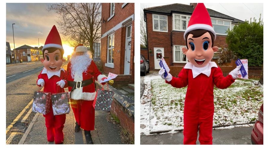 The agents, based in Failsworth, have been personally delivering Lapland tickets to clients’ homes, as well as visiting local care homes, wearing Christmas costumes.
