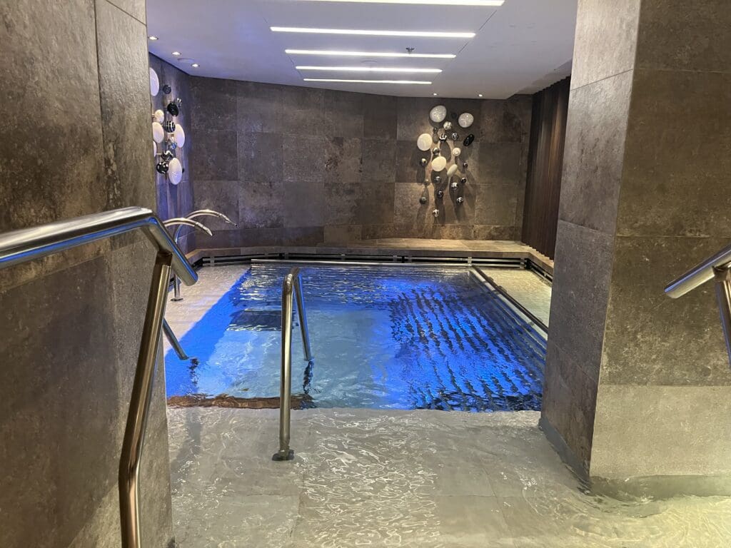 Entrance to the spa, which has a hydro-pool, steam room, sauna and a salt cave is included in the fare. There are also 11 treatment rooms, offering body and facial treatments (at extra cost), plus a nail bar and hair salon, which also cost extra.