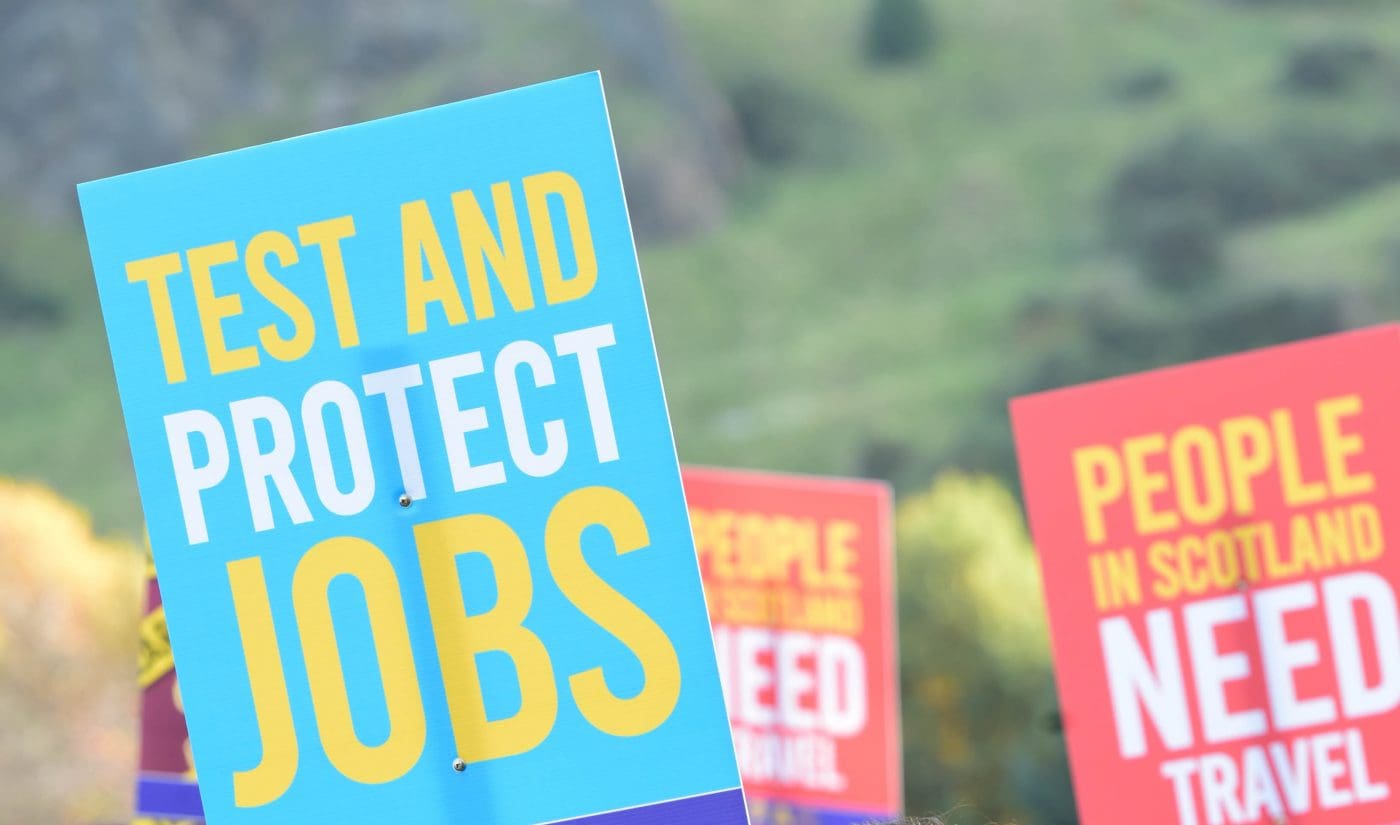 The protest comes a day after Nicola Sturgeon warned Scots that restrictions on overseas travel are likely to remain in place beyond the country’s transition to ‘level zero’ COVID restrictions.