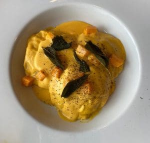 We chose the butternut squash ravioli and the Alaskan halibut.
