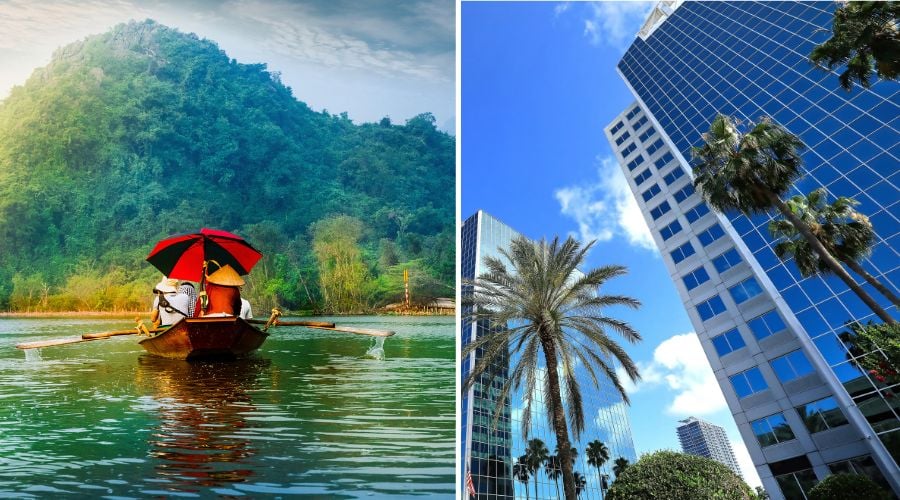 Photos are stock images of Vietnam and Orlando