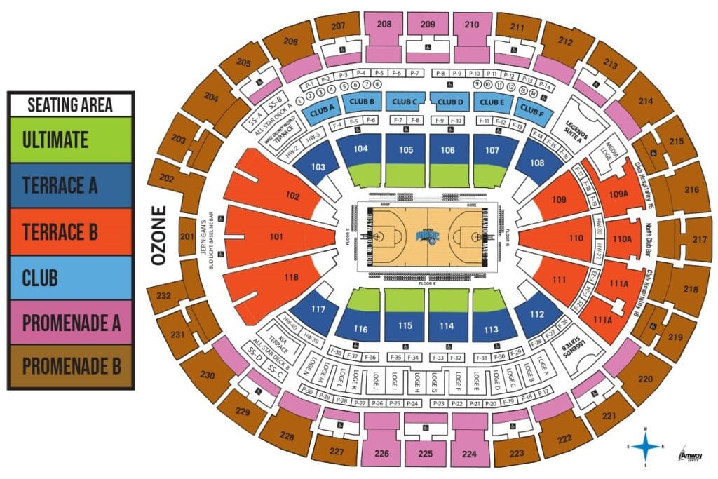 Terrace Level A (Dark Blue) – Great seats in the arena’s Lower Bowl, these seats boast great corner views of the court and allow access to the terrace level amenities.