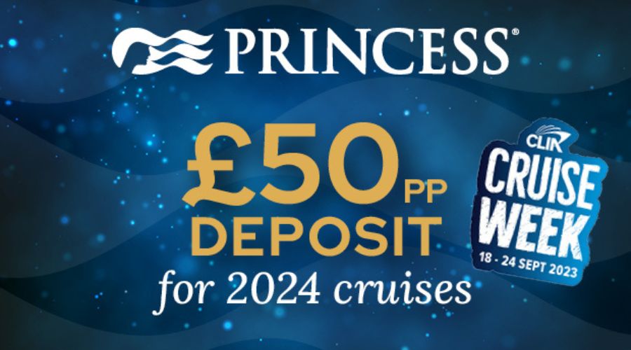 Princess Cruises is offering low deposits of £50 per person on any 2024 cruise booked during CLIA Cruise Week.