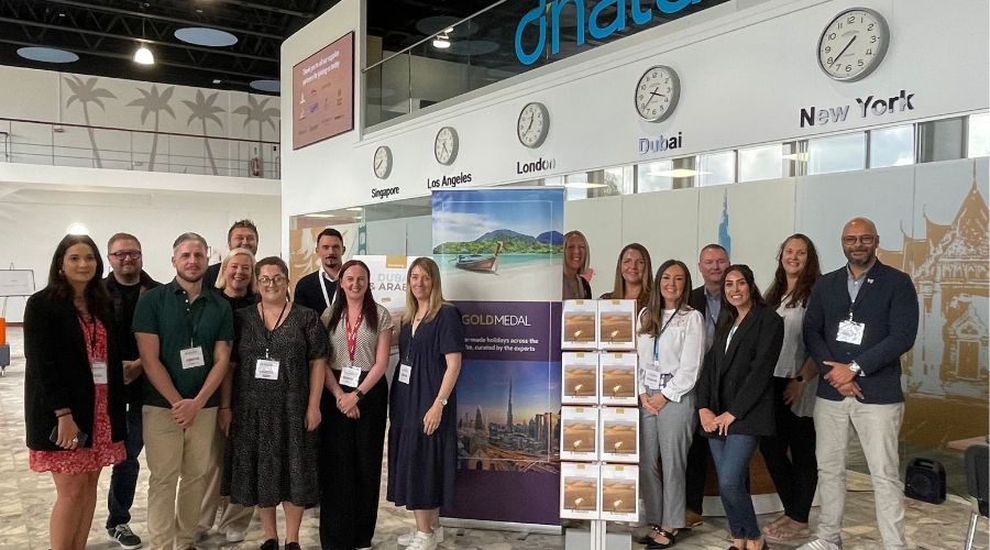 Picture shows Gold Medal celebrating the launch of the brochure with 30 travel agents at its Leyland HQ, with suppliers including Jumeirah, Miral, Dubai Tourism, Banyan Tree, Arabian Adventures and One&Only Resorts hosting training sessions.